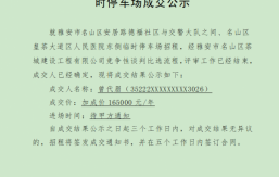 一、基本情況安居路德福社區(qū)與交警大隊(duì)之間(約10000平方米,已完成水泥地面硬化約5000平方米,其余為碎石硬化)、皇茶大道區(qū)人民醫(yī)院東側(cè)(約6200平方米,已完成水泥地面硬化)兩處臨時停車場,已完成配套道閘、監(jiān)控、門衛(wèi)室、廁所的建設(shè)。上述兩處停車場性質(zhì)為臨時停車場,無固定使用時間期限,如遇政府對上述2處臨時停車場有新的規(guī)劃使用方案,則隨時由我公司收回交由相關(guān)單位進(jìn)行處置?,F(xiàn)公司擬對上述兩處臨時停車場一并對外招租。二、招租要求(一)承租方負(fù)責(zé)現(xiàn)場其設(shè)備設(shè)施的日常管理維護(hù),并承擔(dān)安全生產(chǎn)和安保責(zé)任,負(fù)責(zé)門前三包所有區(qū)域的衛(wèi)生管護(hù)。以上所產(chǎn)生費(fèi)...